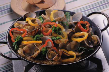 - 在鍋里面往上橄欖油,燒執熱后先把蒜放入鍋里炒,再加入花甲和西蘭花一起炒,放上鹽,胡椒。炒到花甲開口,倒入白葡萄酒1匙。