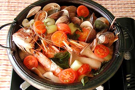 - 再往鍋里放切好的鳳尾魚片,煎至香味出來后,再放入蛤蜊,番茄,西芹,水和白酒,蓋上鍋蓋,煮沸后撇除浮沫,加以鹽和胡椒粉調味。