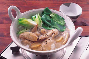 - 將雞翅膀和A材料放入鍋中煮沸去除澀味后,用小火煮大約十分鐘,期間撈出水面浮泡。